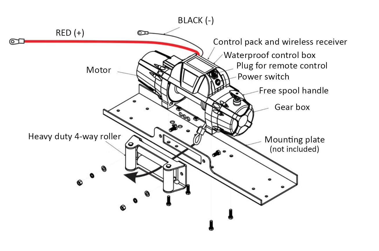 Vinschen drivs med 12 V likström och uppnår sin maximala dragkraft på första linvarvet. När antalet linvarv på trumman ökar minskar den tillgängliga dragkraften gradvis, vilket är typiskt för alla trumvinschar.