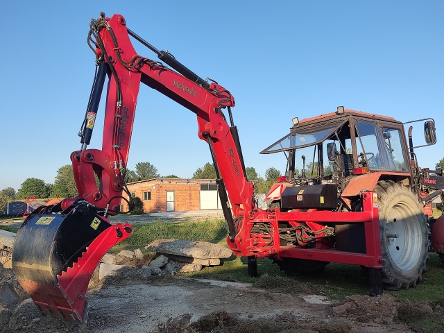 Wyjątkowy projekt naszego klienta, który stworzył ramię do podłączenia do traktora do kopania i załadunku różnych rodzajów materiałów.