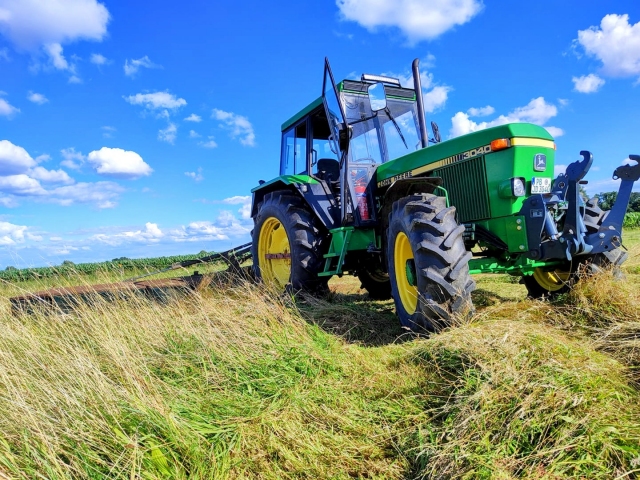 Jedno letnie zdjęcie naszego klienta z Niemiec, który zainstalował naszą uniwersalną hydraulikę przednią w swoim John Deere 3040. Dzięki hydraulice przedniej zdecydowanie zwiększamy efektywność pracy z ciągnikiem.