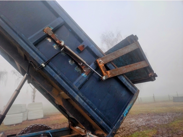 Klient z Belgii wcześniej miał tylko mechaniczne otwieranie tylnego boku swojej przyczepy ciągnika. Z powodu większego obciążenia, otwieranie było dość czasochłonne, więc klient przekształcił je na hydrauliczne. Potrzebne były pewne wzmocnienia, a także połączenie obu cylindrów hydraulicznych z kontrolkami w kabinie ciągnika. Klient może teraz otworzyć bok przyczepy z kabiny i nie musi wychodzić na zewnątrz przed wywrotem.